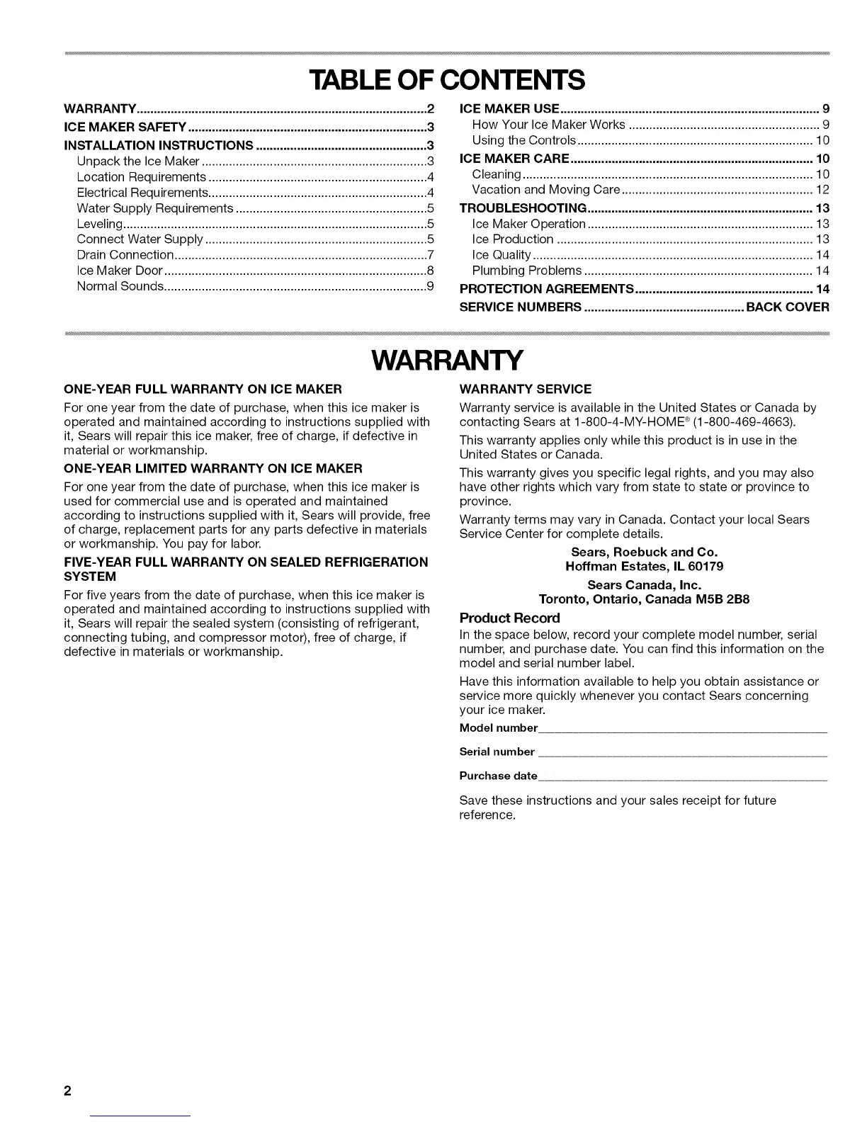 ONE-YEAR LIMITED WARRANTY ON ICE MAKER