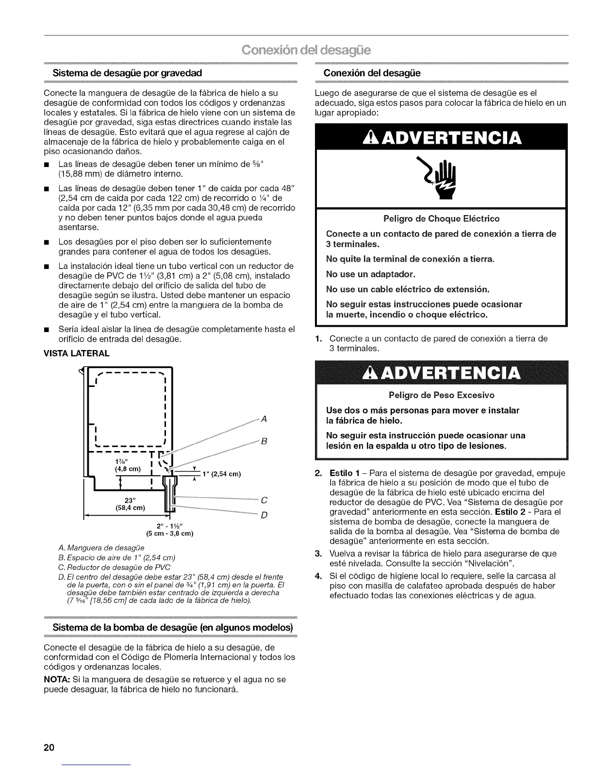 desagQe segOn se ilustra. Usted debe mantener un espacio