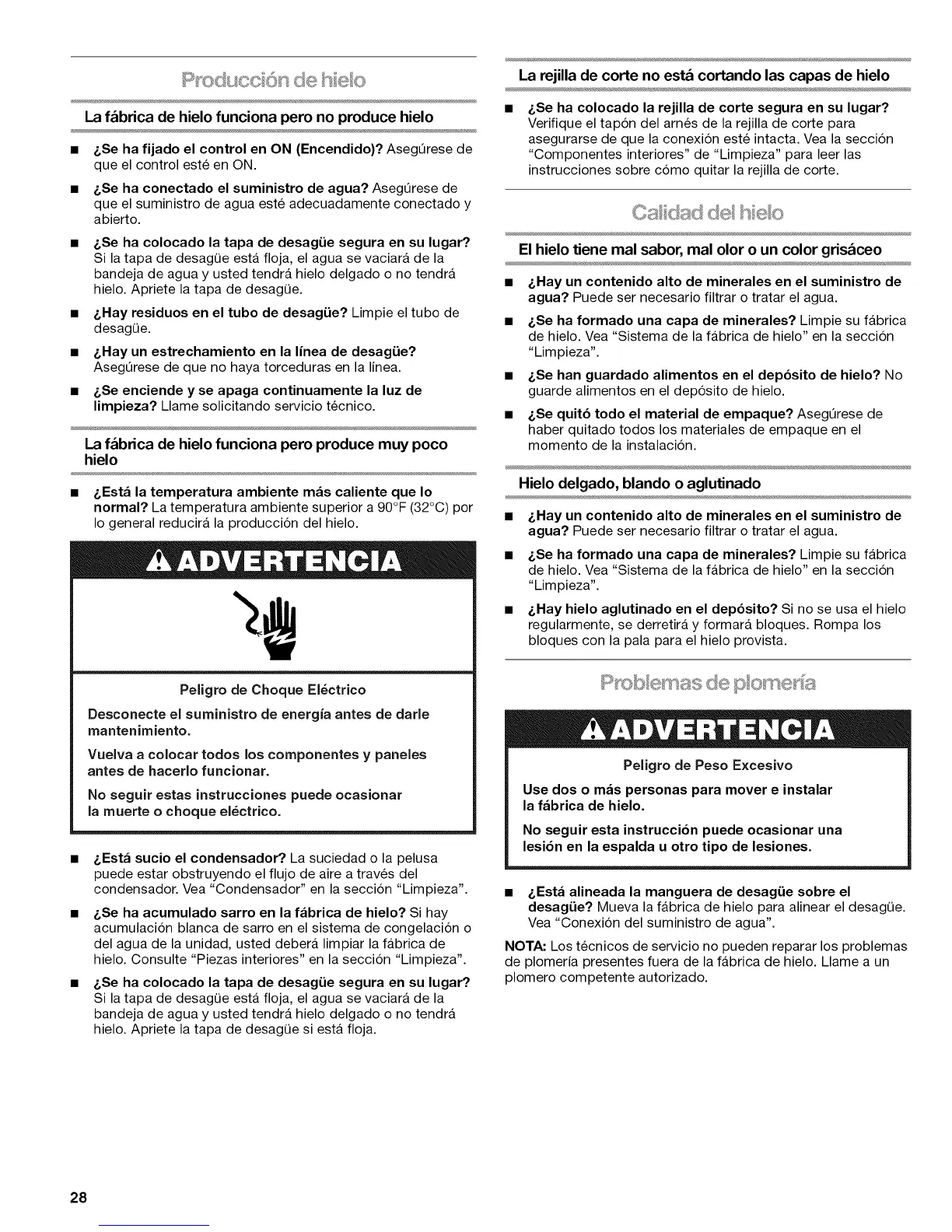 • &Hay hielo aglutinado en el depbsito? Si no se usa el hielo