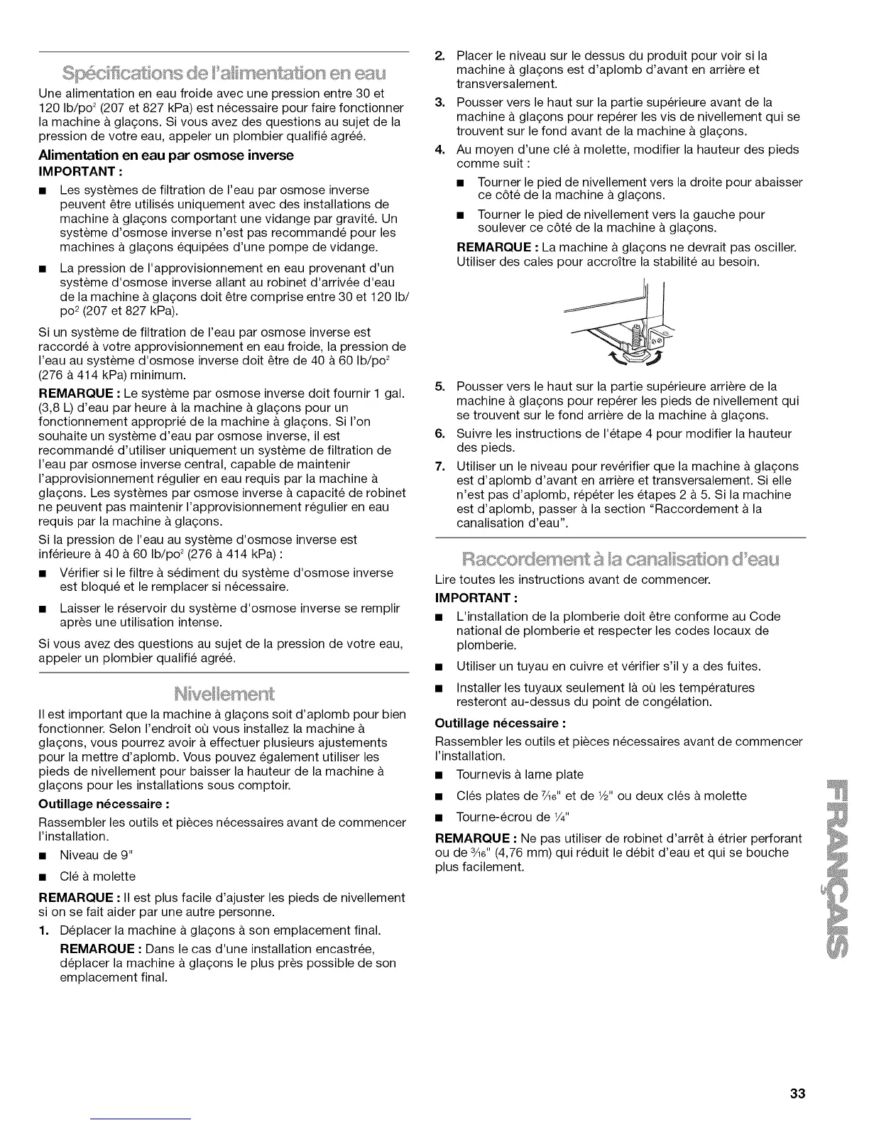 REMARQUE • II est plus facile d'ajuster les pieds de nivellement