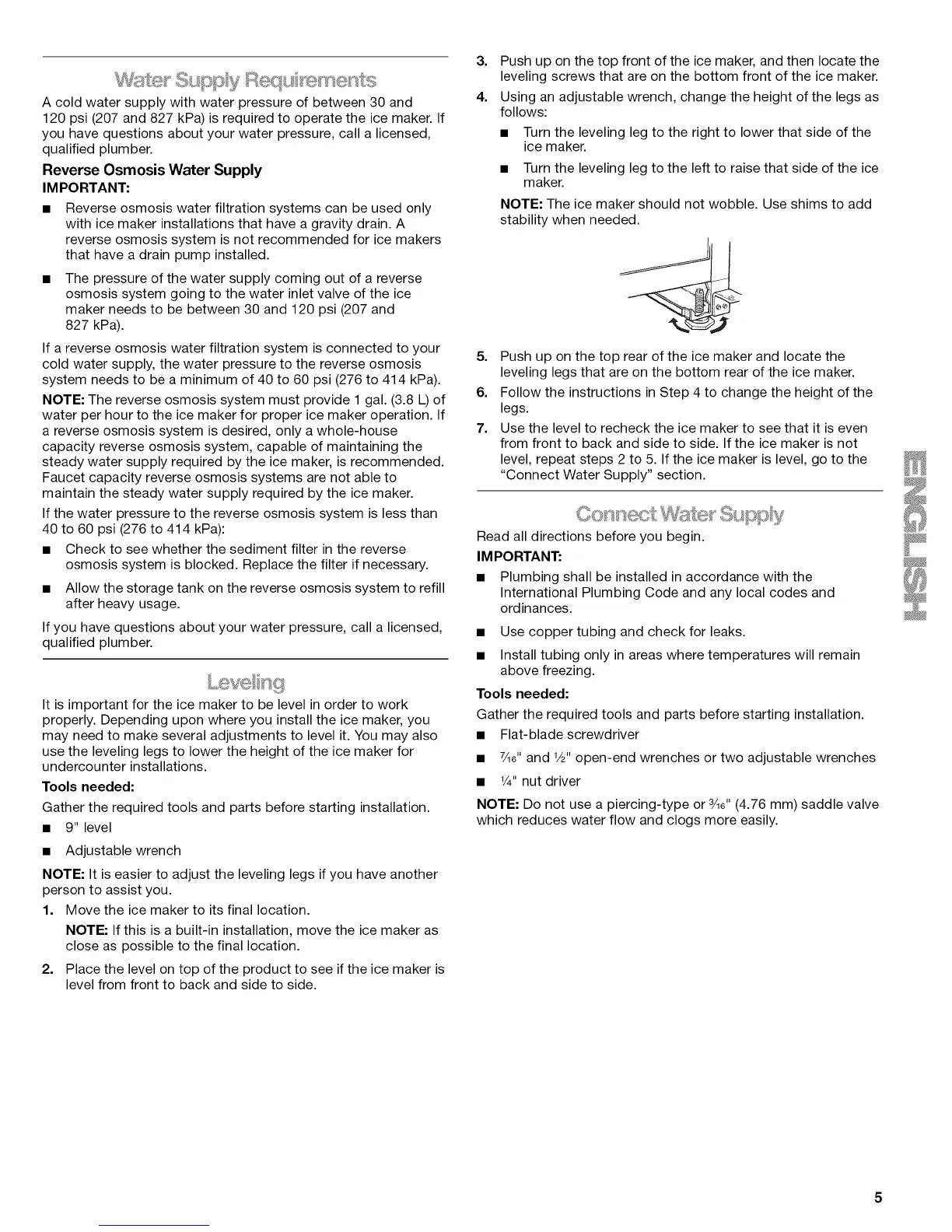 120 psi (207 and 827 kPa) is required to operate the ice maker. If