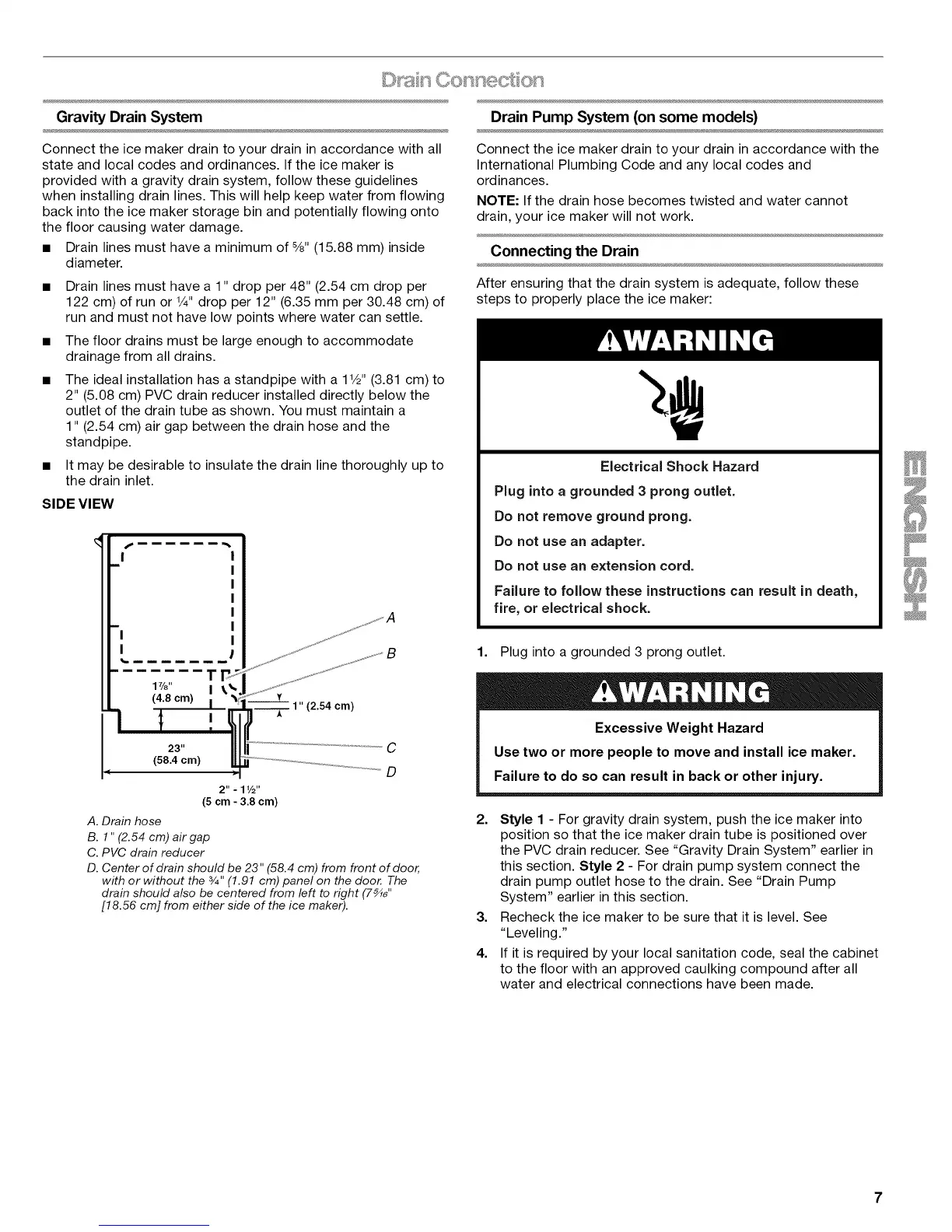 the PVC drain reducer. See "Gravity Drain System" earlier in
