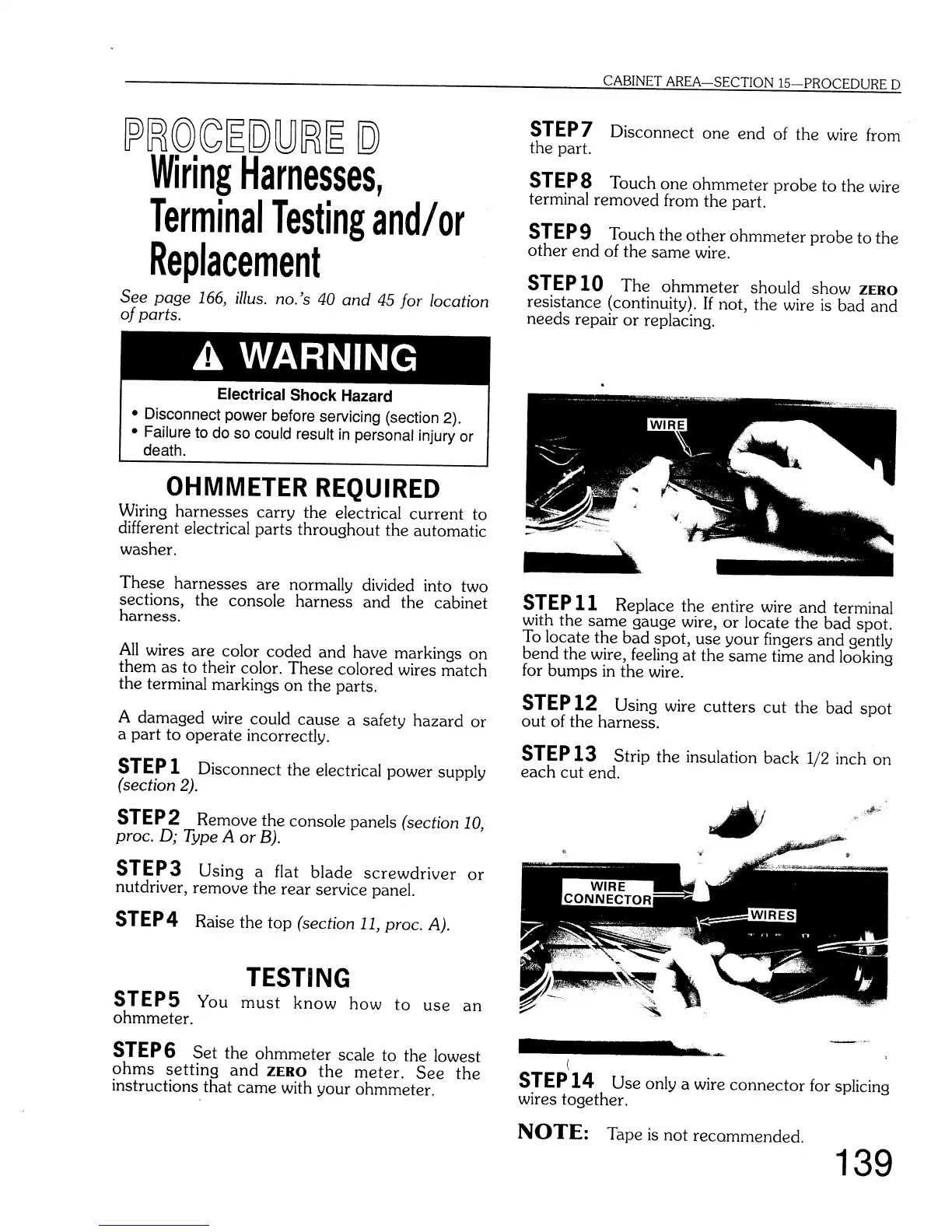 Sears Kenmore - Wiring Harnesses, Terminal Testing And;Or Replacement