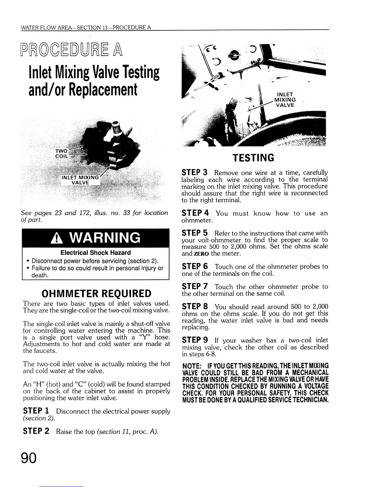 Sears Kenmore - Inlet Mixing Valve Testing And;Or Replacement