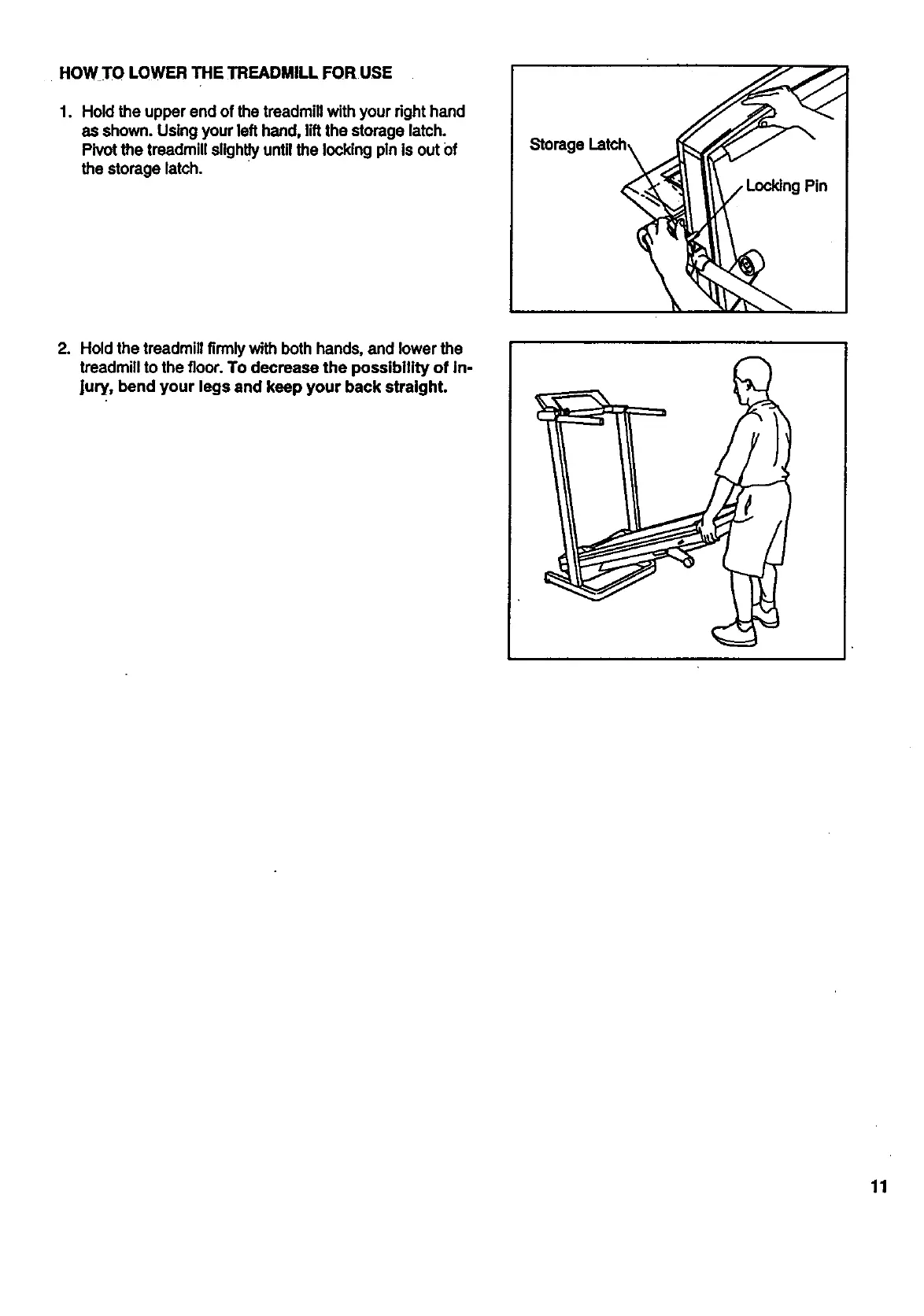 Pivot the treadmill slightlyuntil the locking pin is out Of