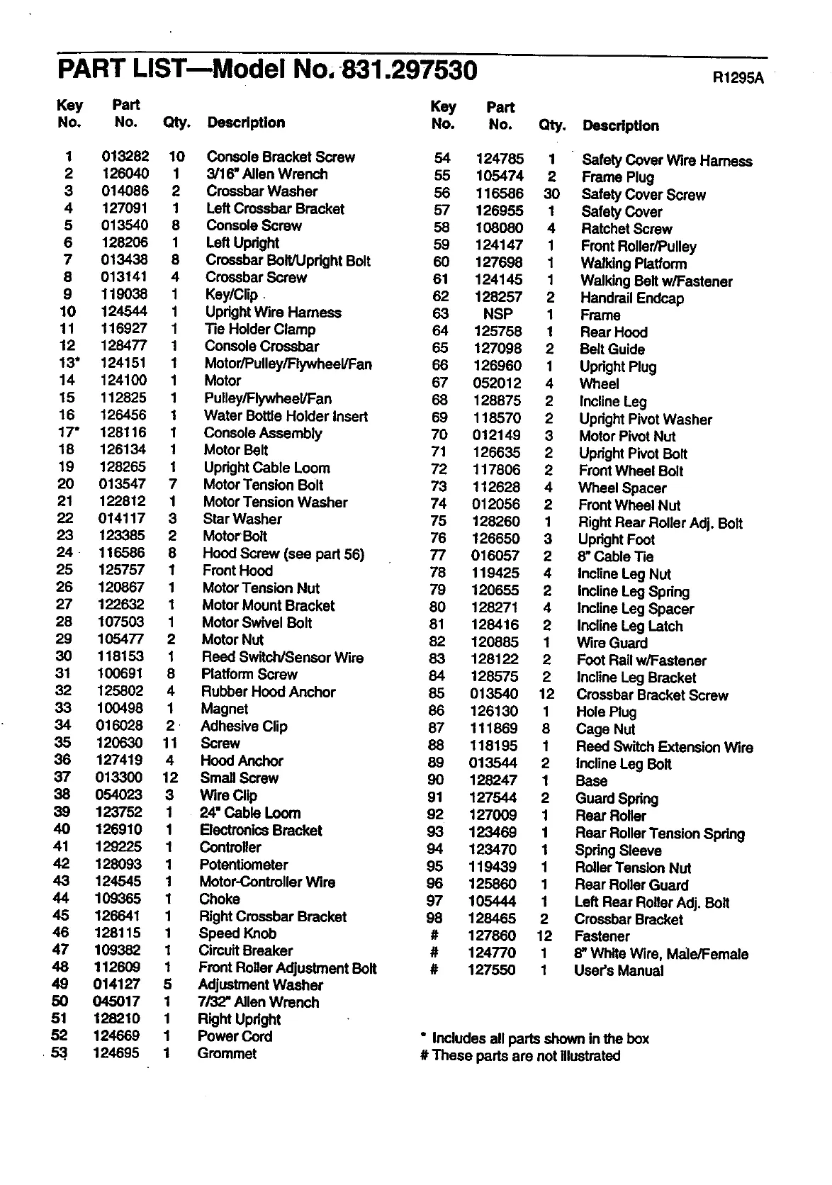 PART LIST-Model No, 831.297530