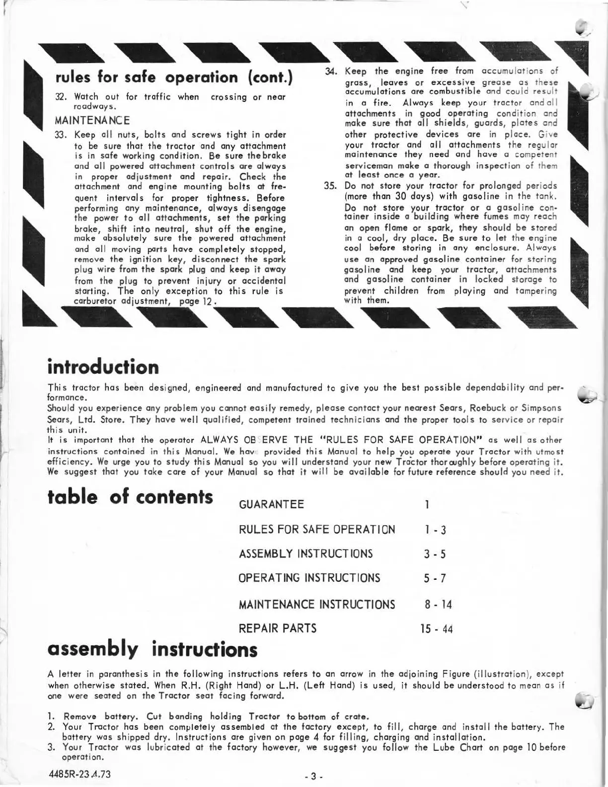 Sears SS/16 - OPERATING INSTRUCTIONS; MAINTENANCE INSTRUCTIONS