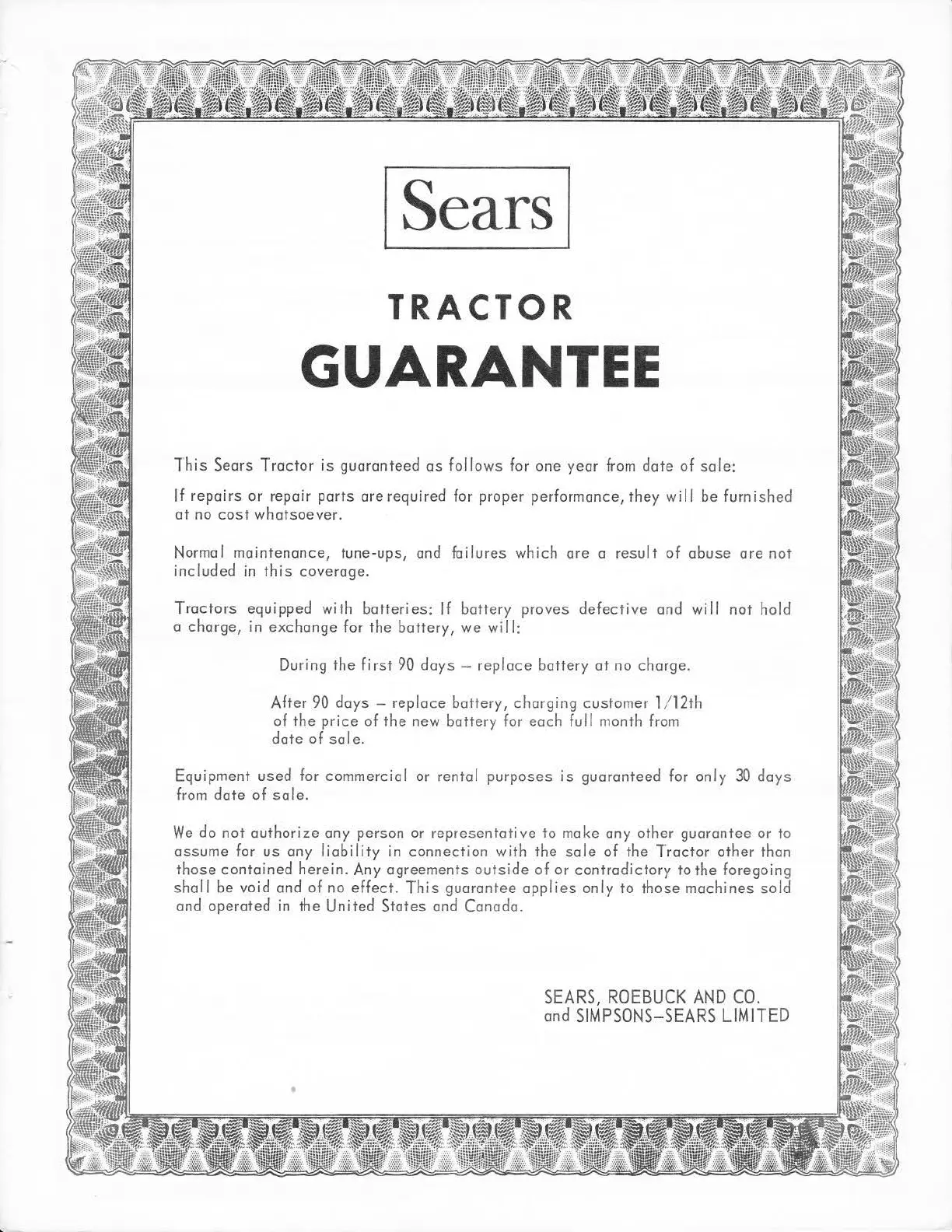 Sears Super 12 - Sears Tractor Guarantee