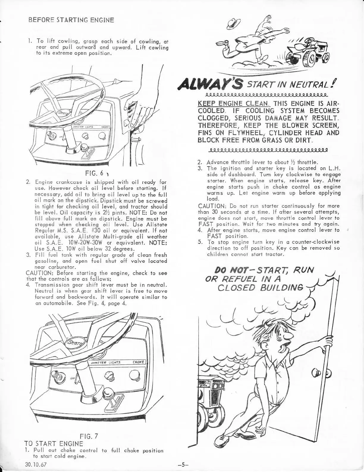 Sears Super 12 - Before Starting Engine; Engine Oil and Fuel Check; Neutral Gear Position; To Start Engine