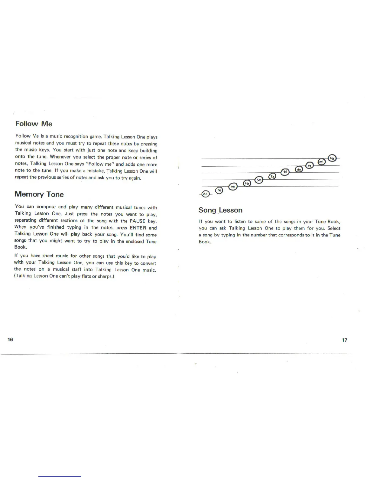 Sears TALKING COMPUTRON - Music Activities; Follow Me; Memory Tone; Song Lesson