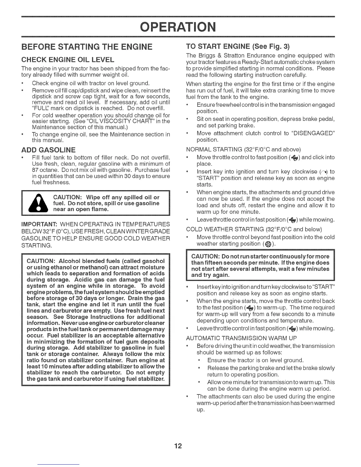 easier starting. (See "OIL VISCOSITY CHART" in the