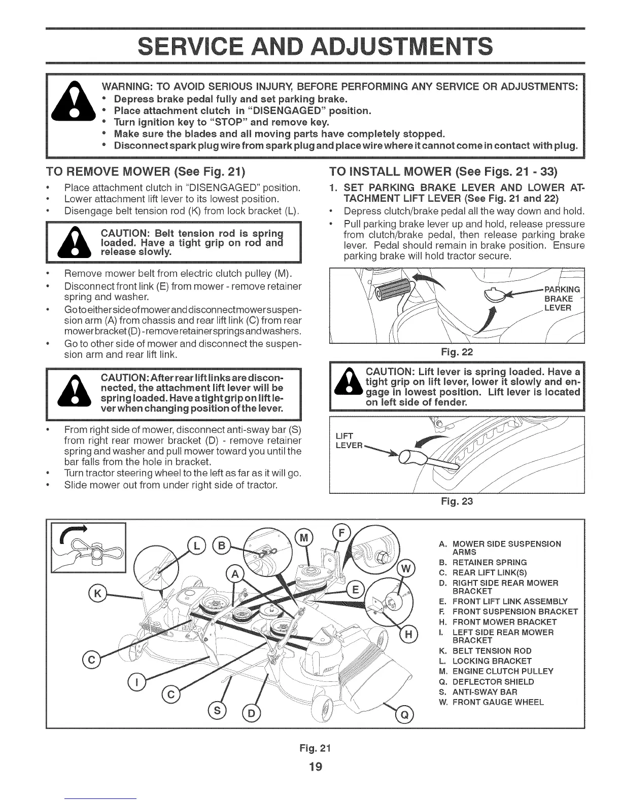 TACHMENT LiFT LEVER (See Fig. 21 and 22)