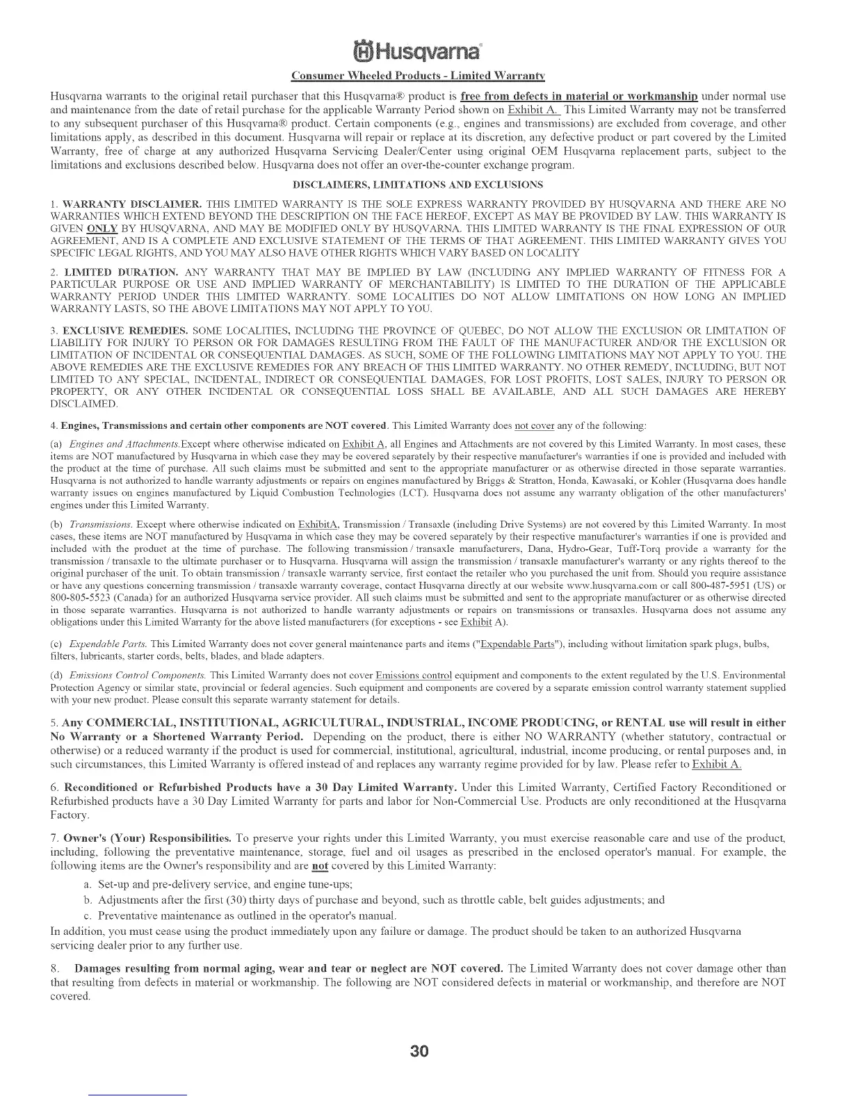 limitations and exclusions described belowo Husqvama does not offer an over-the-connter exchange program.