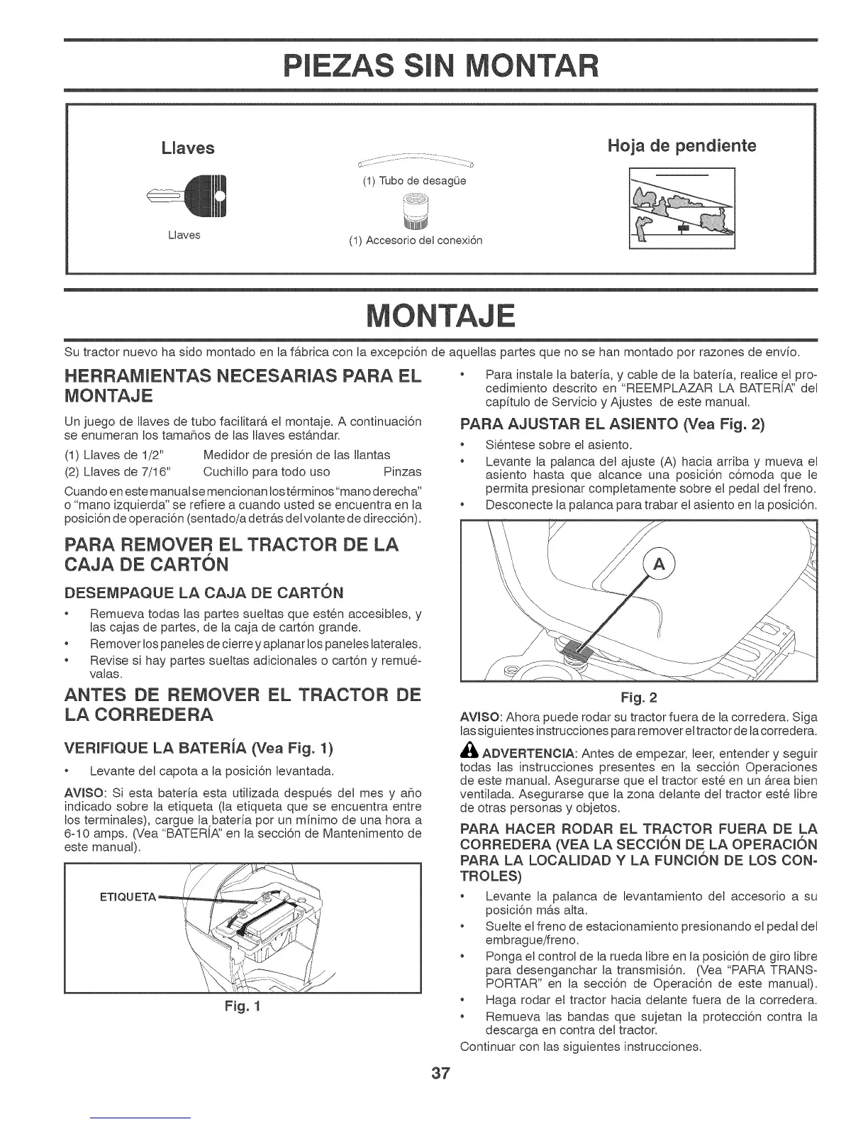 de este manual. Asegurarse que e{ tractor este en un area bien