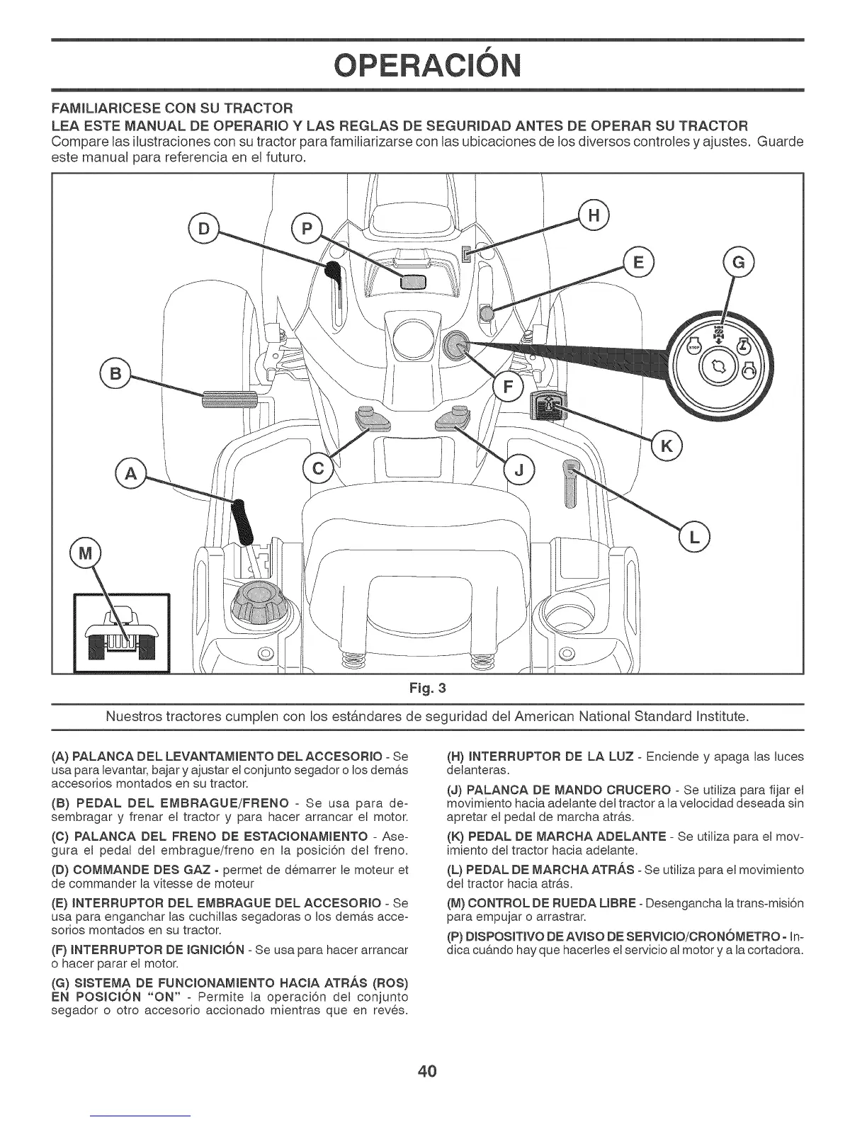Compare Jas iJustraciones con su tractor para familiarizarse con Jas ubicaciones de los diversos controles y ajustes. Guarde