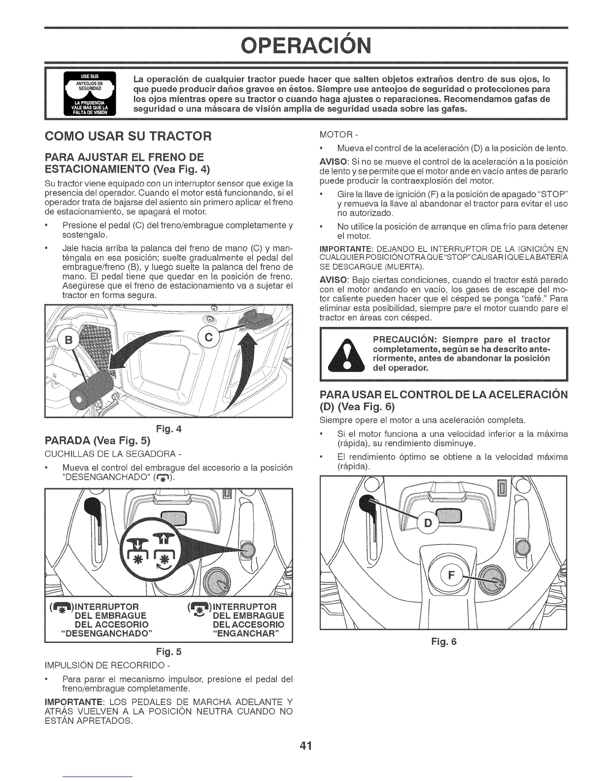 los ojos mientras opere su tractor o cuando haga ajustes o reparaciones. Recomendamos gafas de
