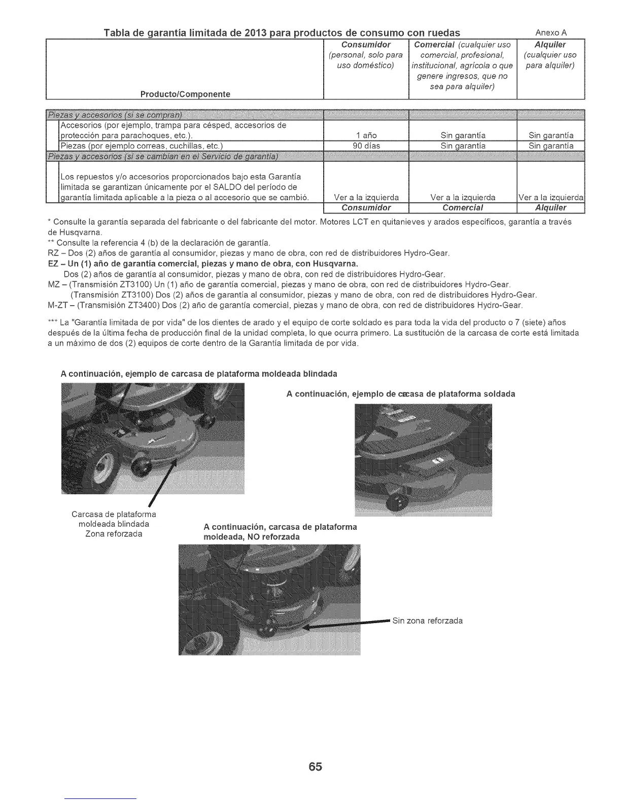 MZ = (Transmisi6n ZT3100) Un (1) amo de garantia comercial, piezas y mano de obra, con red de distdbuidores Hydro=Gear.