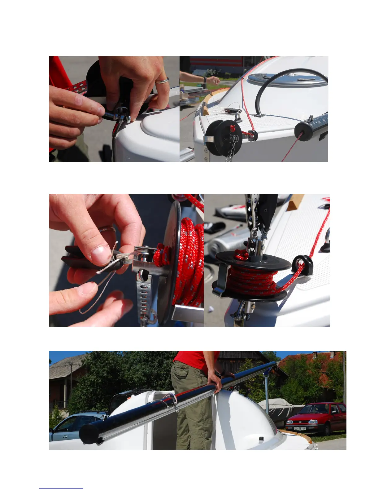 Attach trapeze cleat to the furler with dyneema line. Second photo is showing nished assembly.