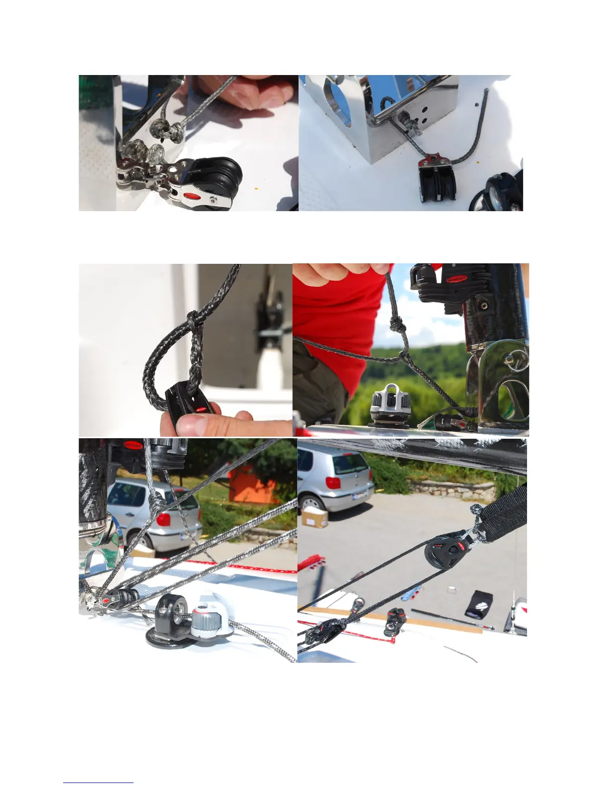 Attach the double block on the mast foot and lead the composite shackle trough the holes.