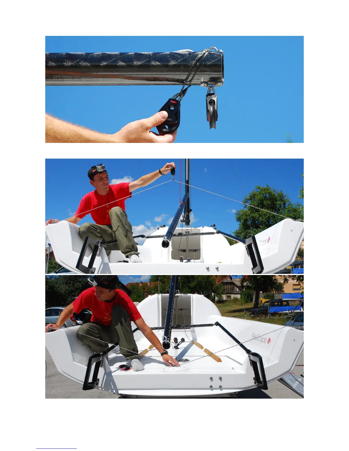Attach aft main sheet blocks like shown on the photo: