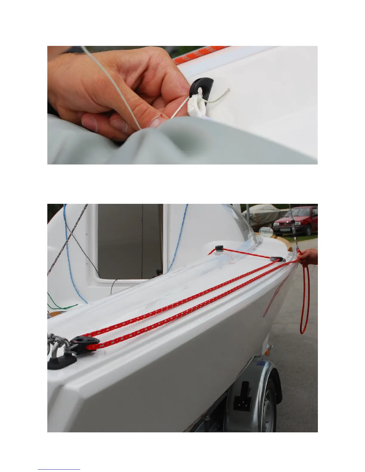 Continue by attaching gennaker blocks and running the sheets trough them. Not that silver ones