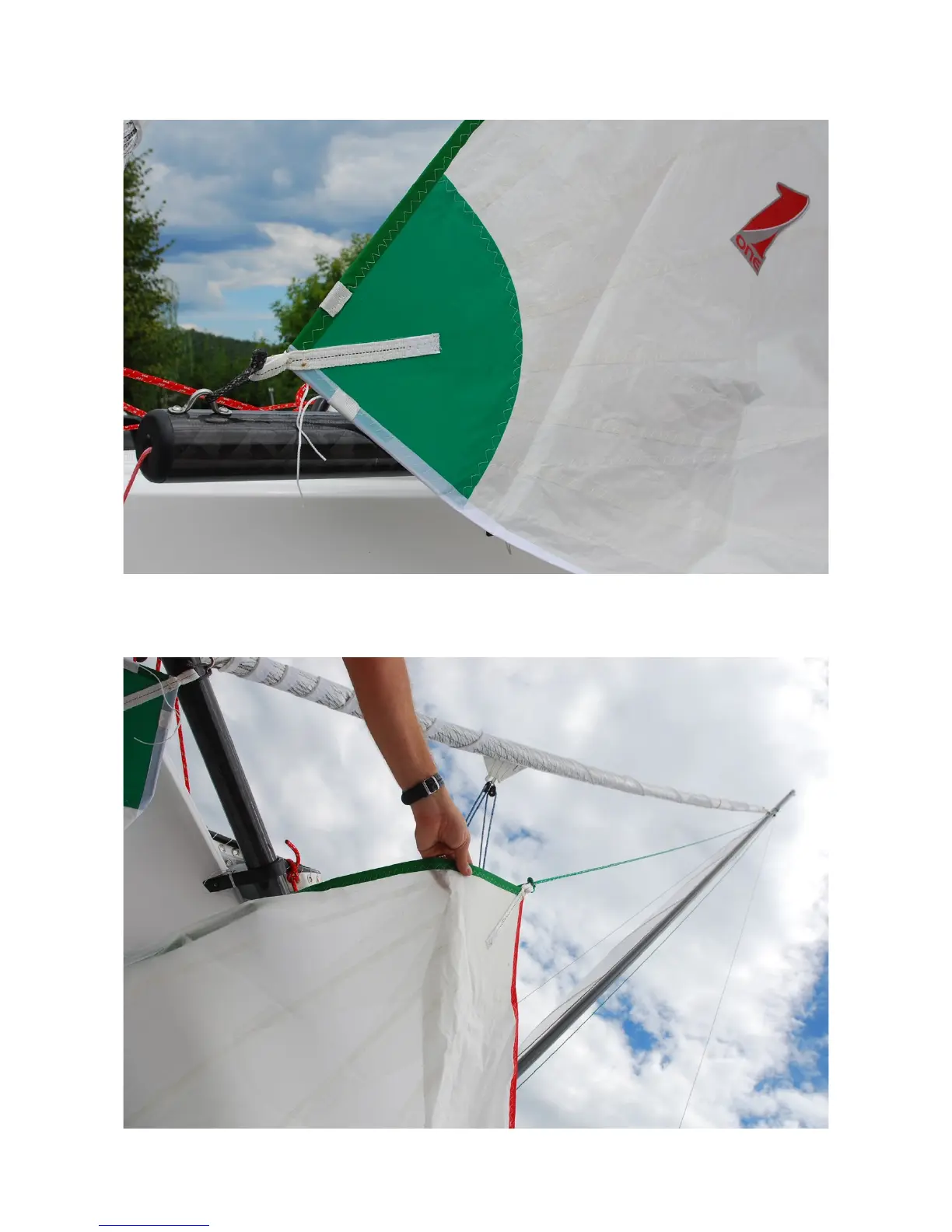 Attach hallyard to the head using bowline knot. You can nd it since luff (green) and leech (red)