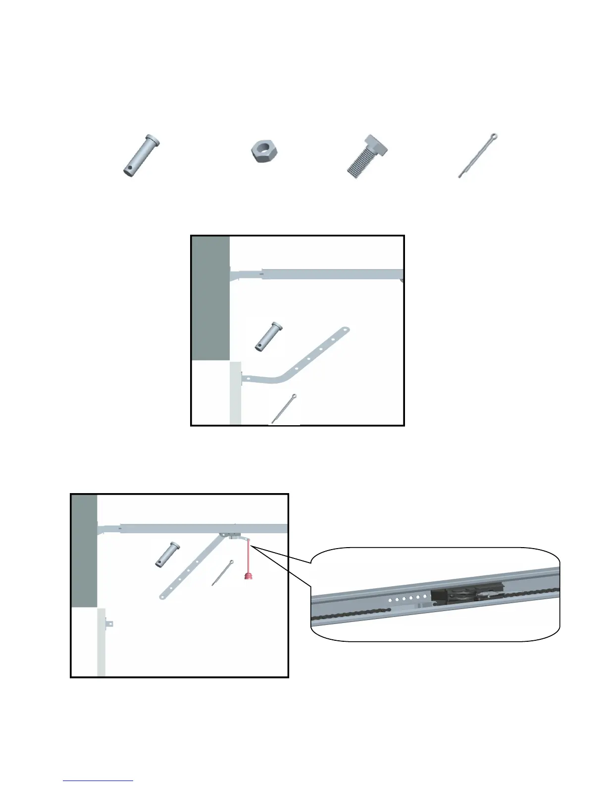 straight door arm to the trolley by using the shouldered shaft (H2).Attach the