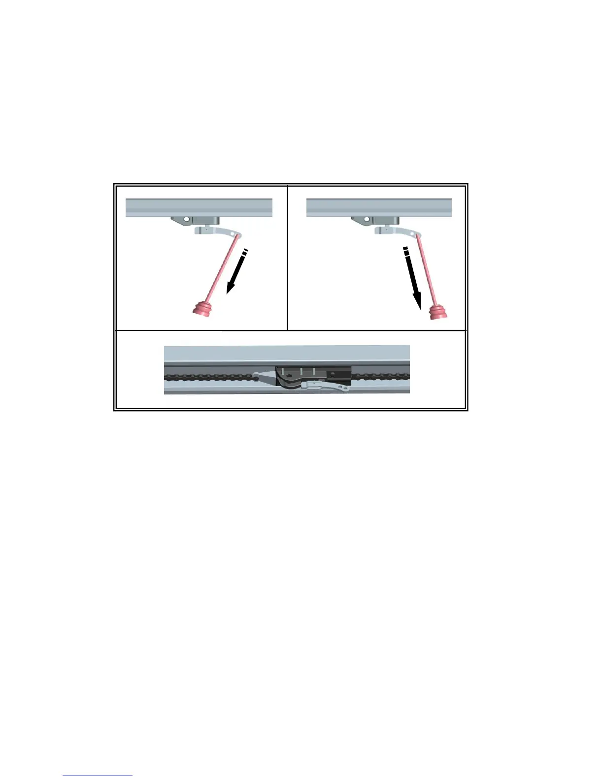 c To re-engage the trolley with the door, Pull down the emergency release knob and