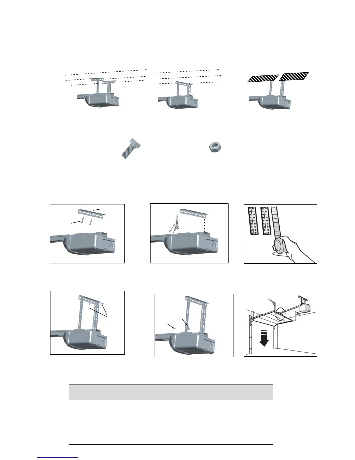 Hanging the garage door opener will vary depending on your garage. Below are three example installations. Your