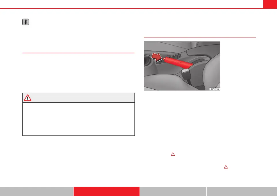 rection of the arrow ⇒ Fig. 145 and guide the handbrake lever