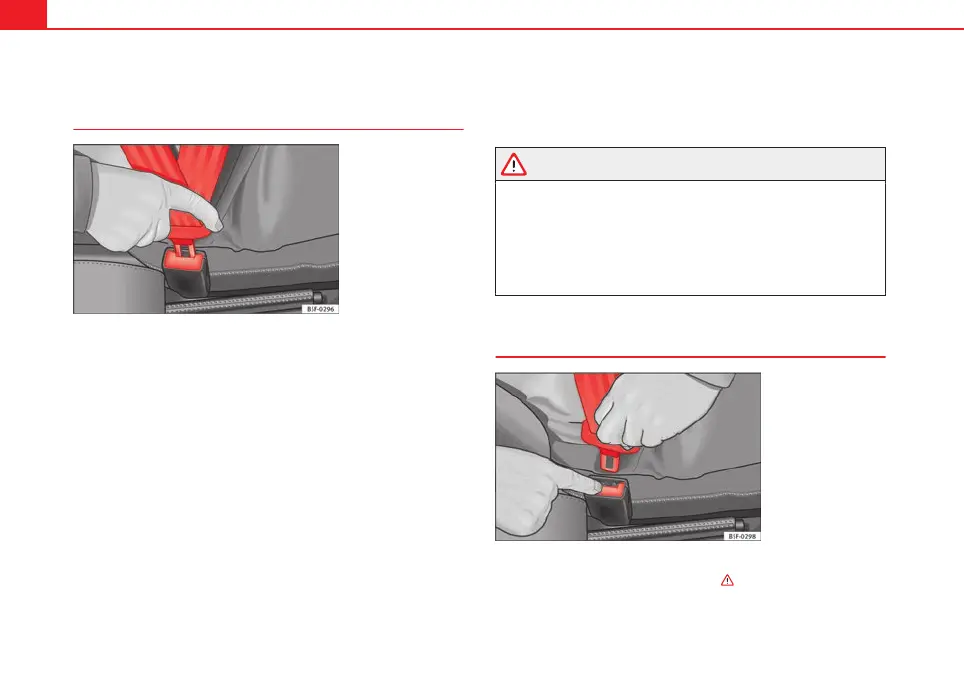 – Press the red button on the belt buckle ⇒ Fig. 12. The latch