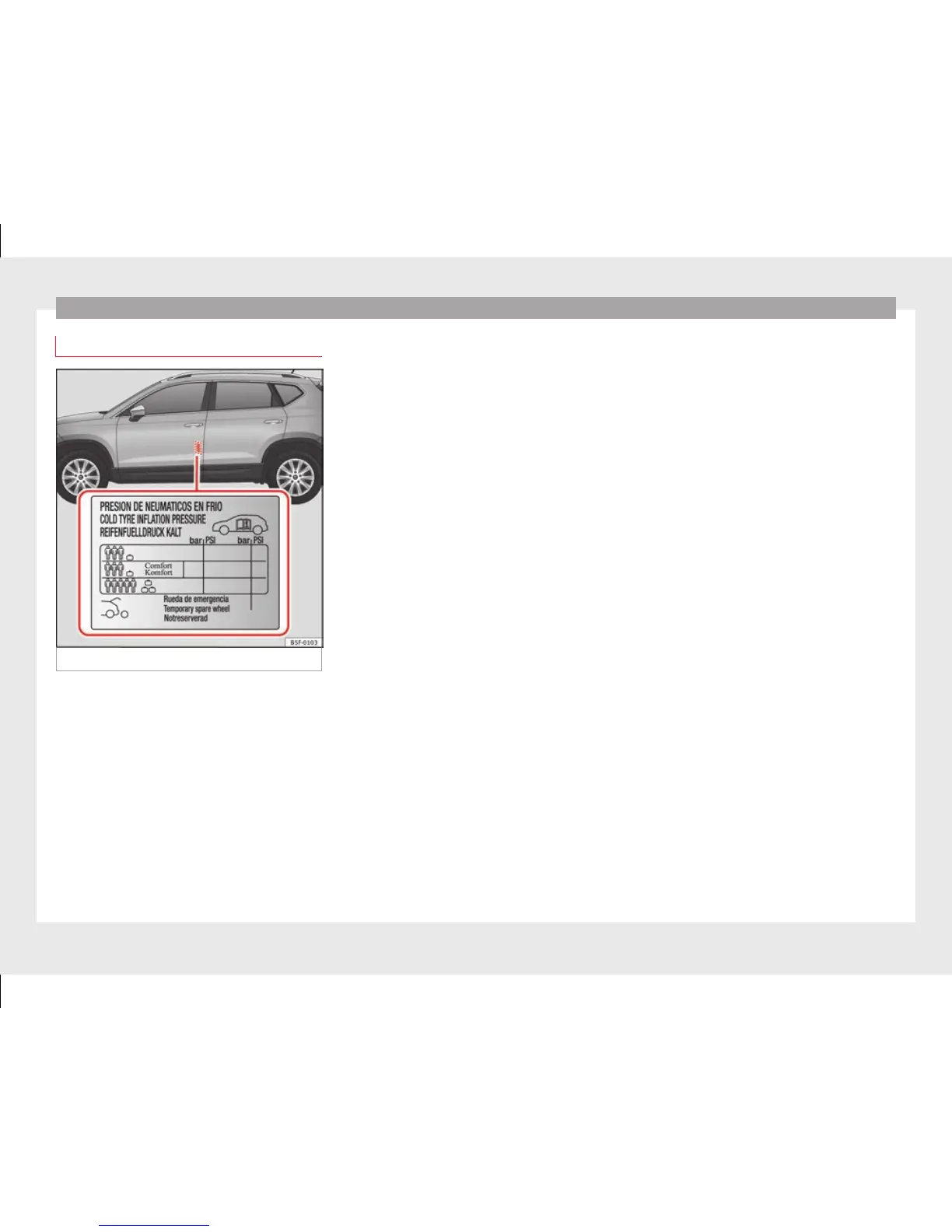 Fig. 224 Location of the tyre pressure sticker.