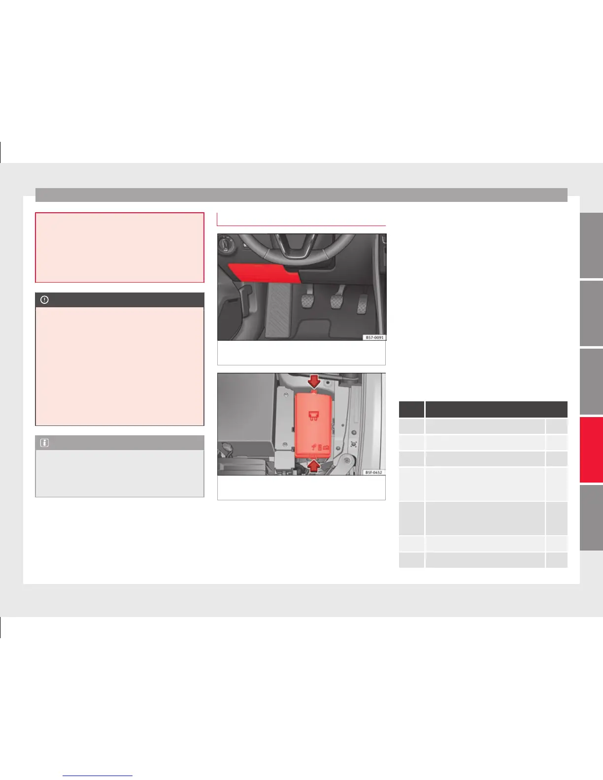 Opening and closing the fuse box situated