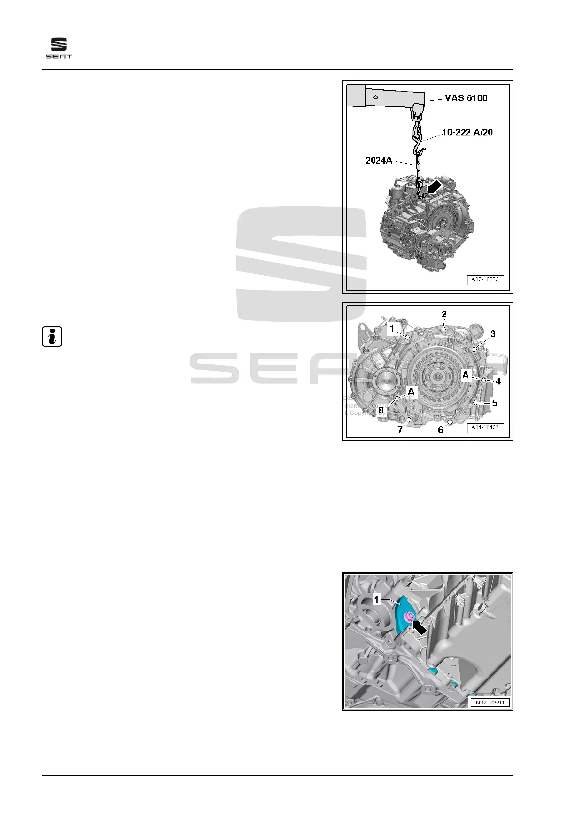 – Attach hook of lifting tackle - 2024 A- to gearbox lifting eye and