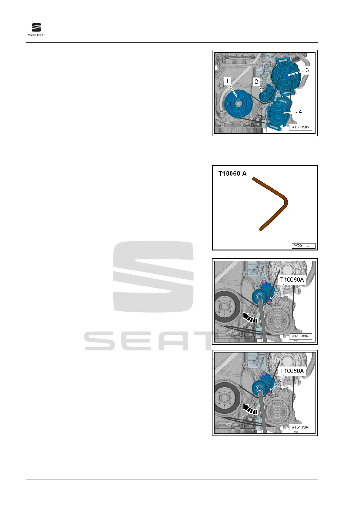 – Lock tensioner in place with locking pin - T10060 A- .