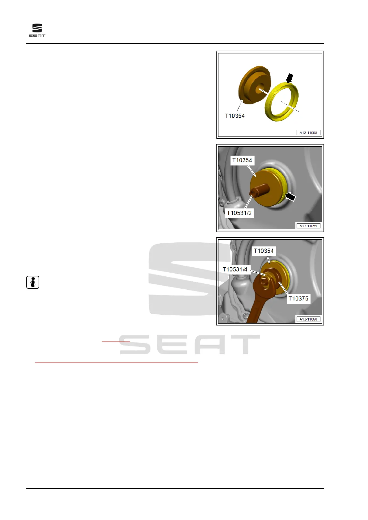 – Slide seal -arrow- with thrust piece - T10354- onto clamping