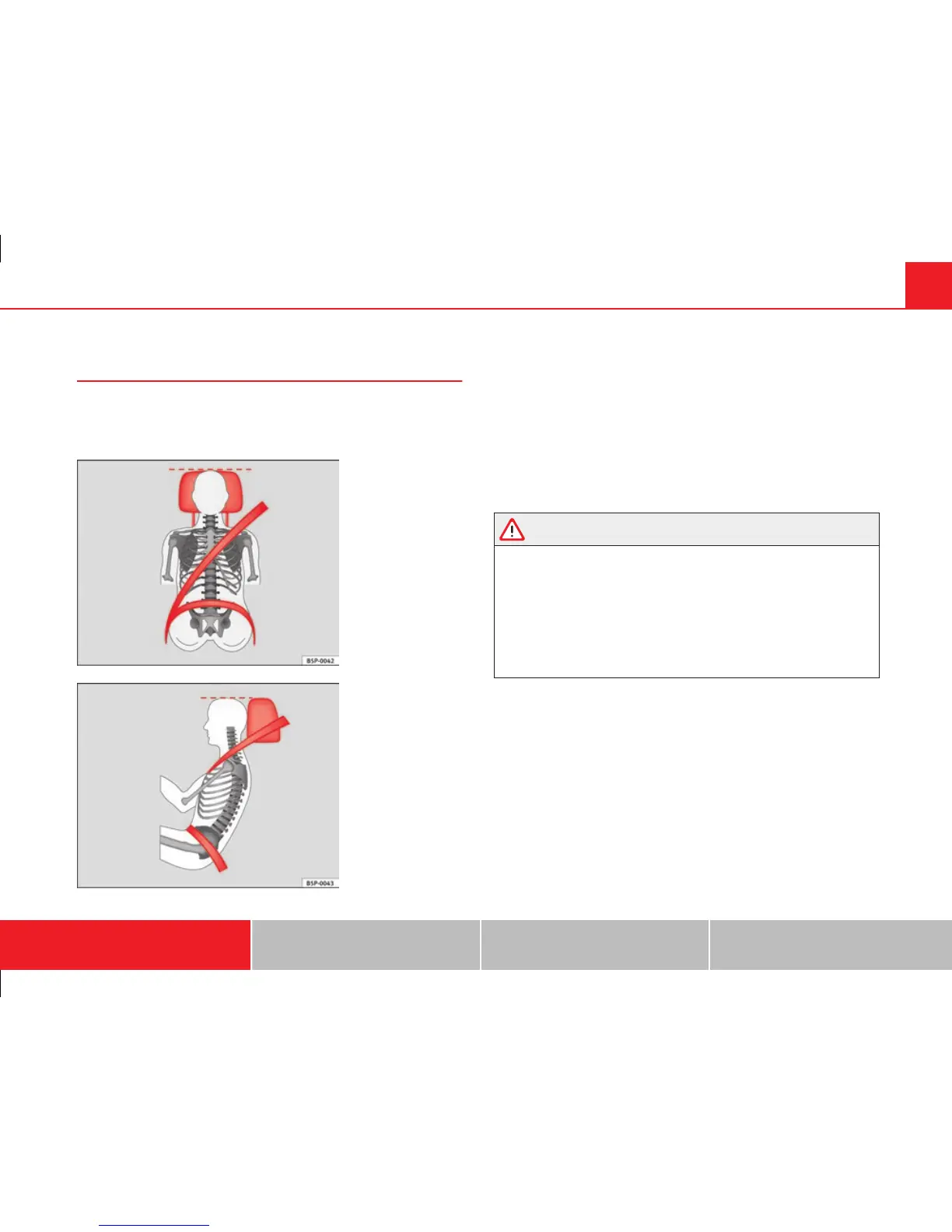 ● Incorrectly adjusted head restraints also increase the risk of injury