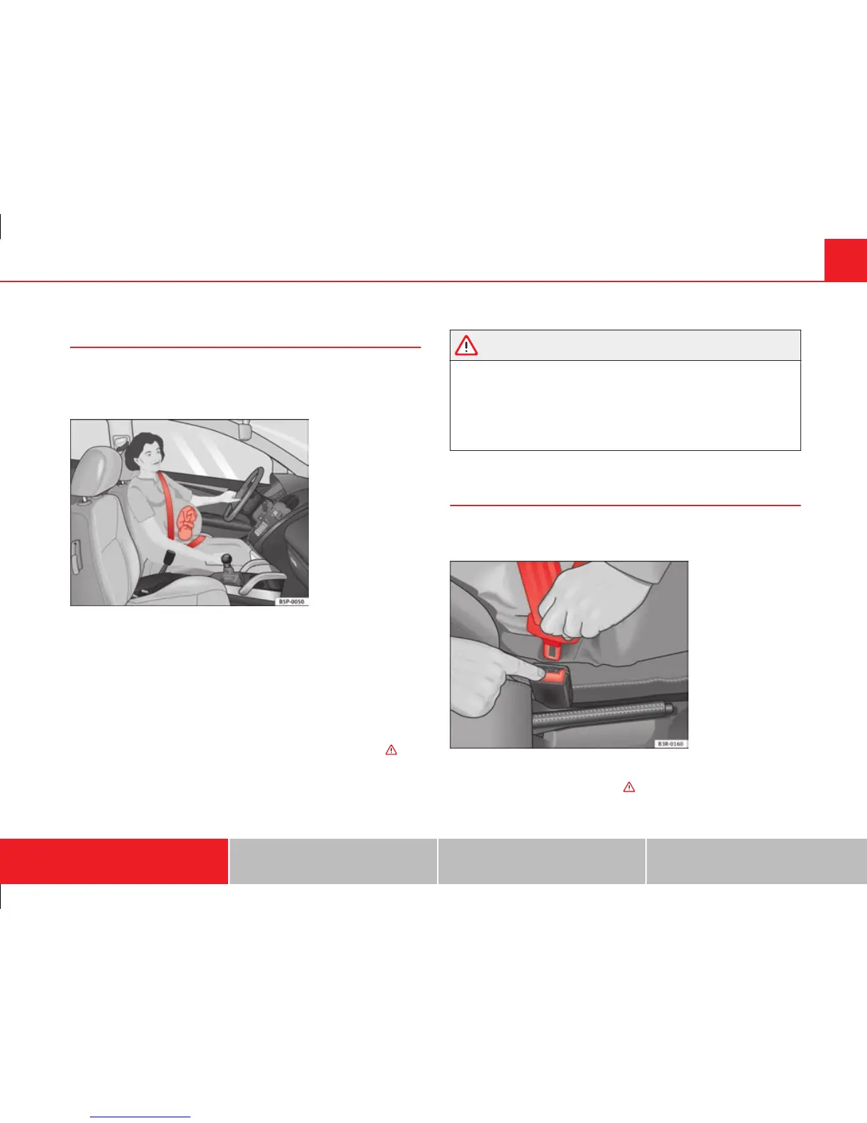 – Press the red button on the belt buckle ⇒ fig. 15. The latch plate