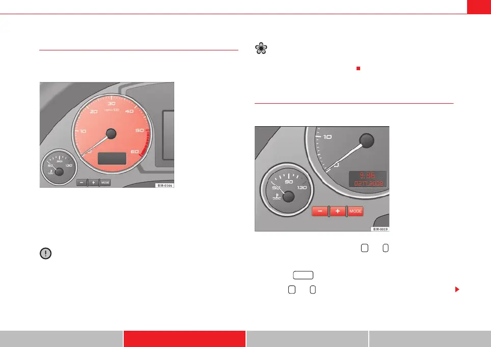 The rev counter needle ⇒ fig. 39 must only reach the red zone for a short