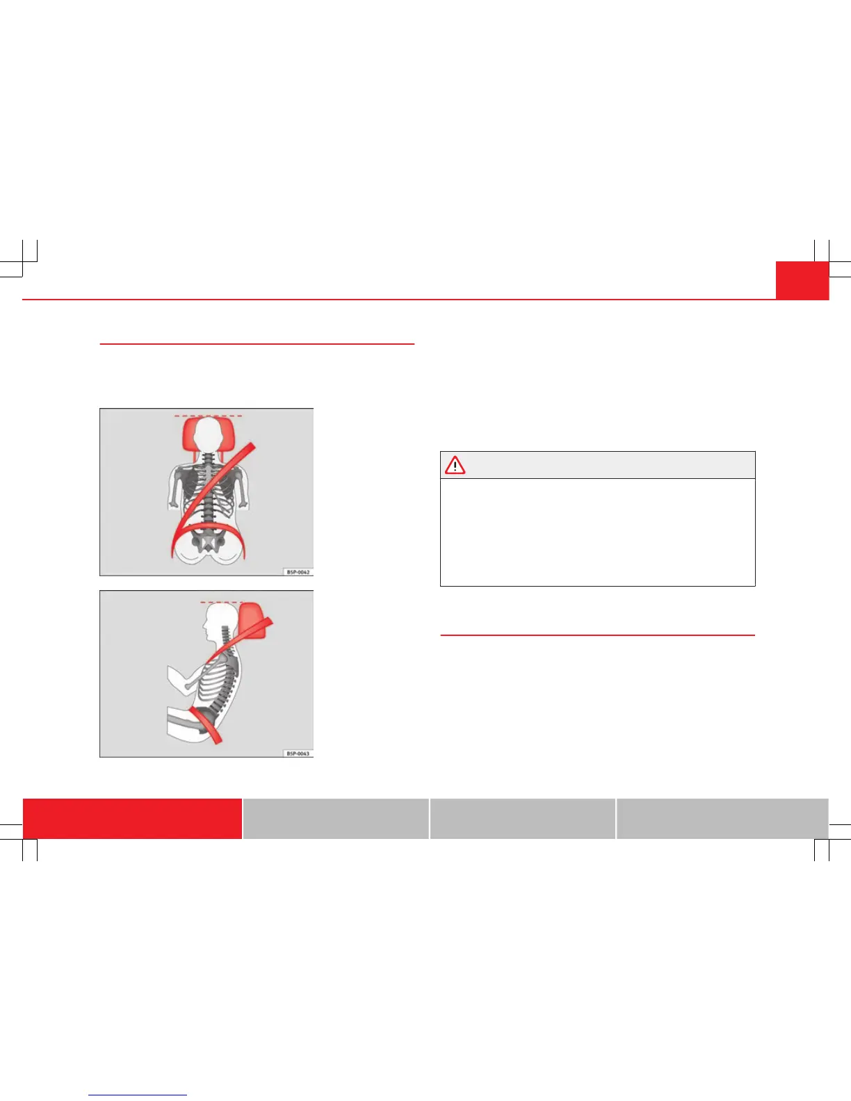 ● Incorrectly adjusted head restraints also increase the risk of injury