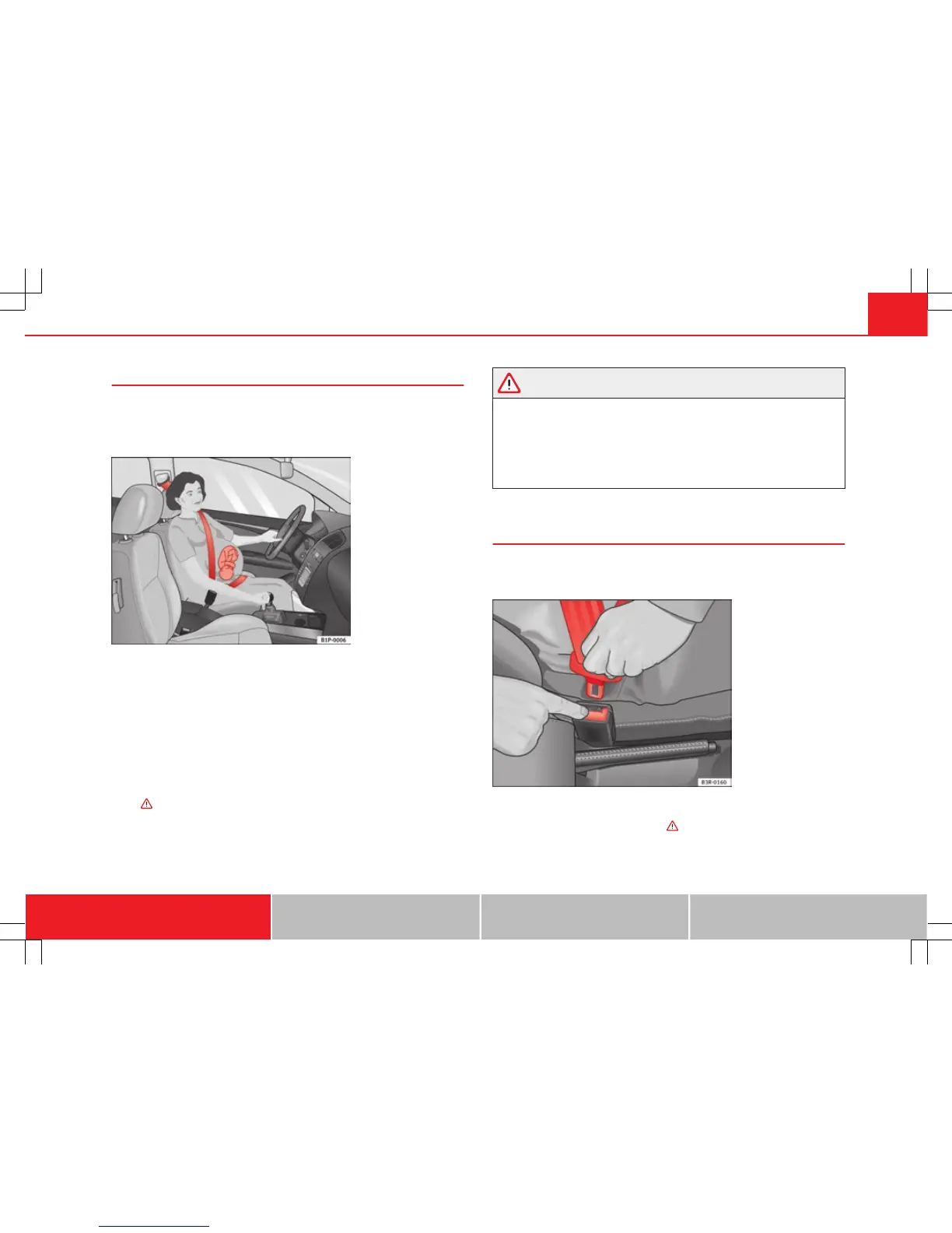 – Press the red button on the belt buckle ⇒ fig. 15. The latch plate