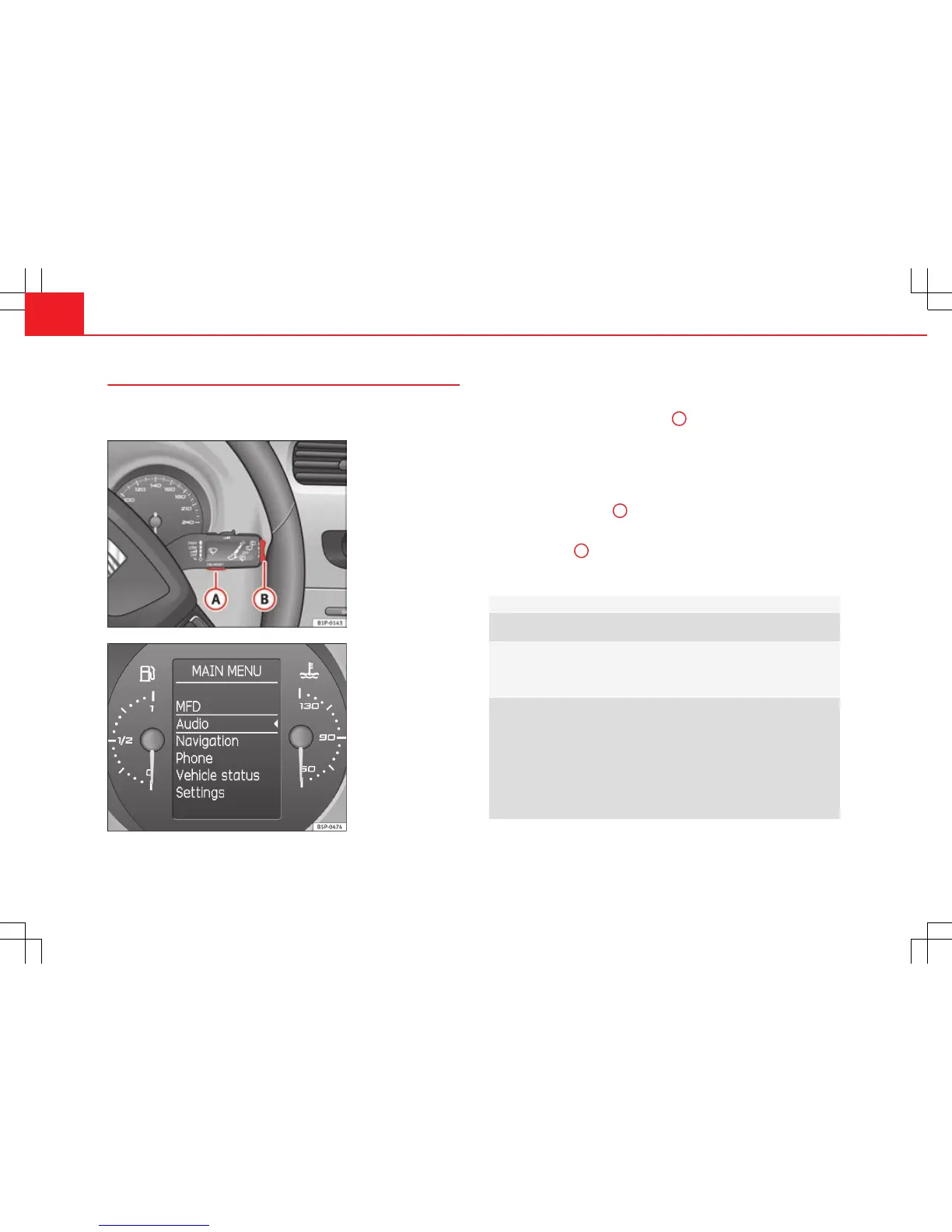 Example of menu use ⇒ page 68