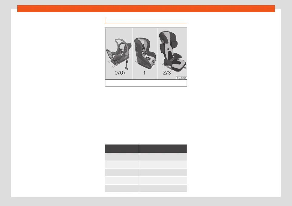The child seats are grouped into 5 catego-
