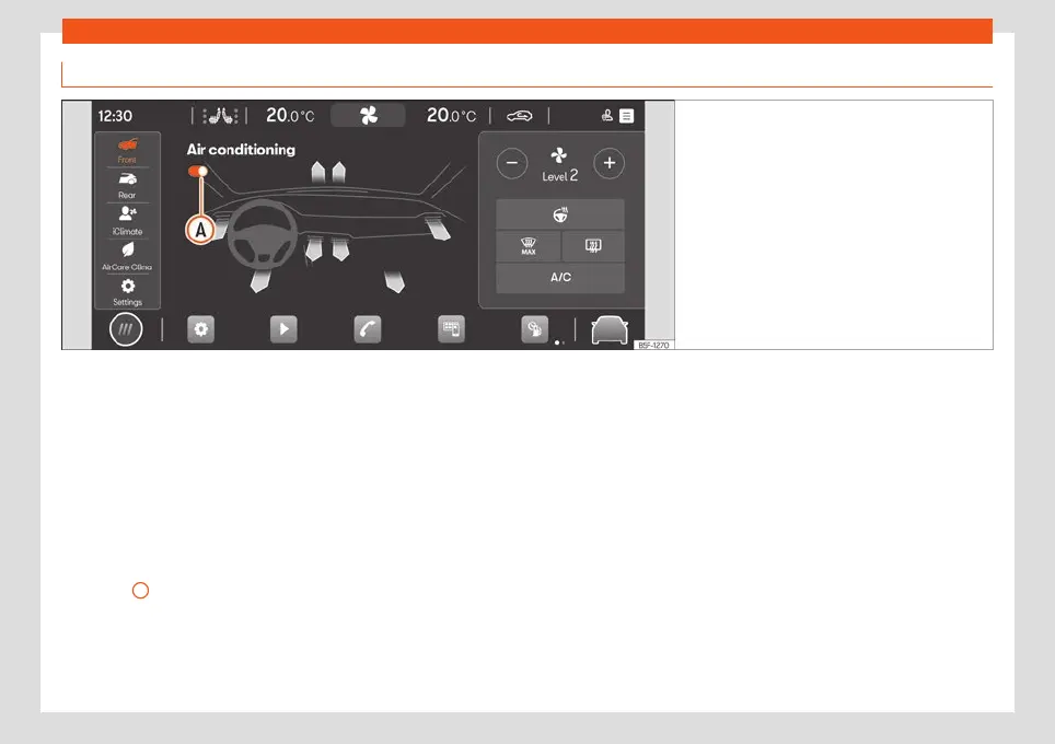 Submenu for the air conditioning in the front