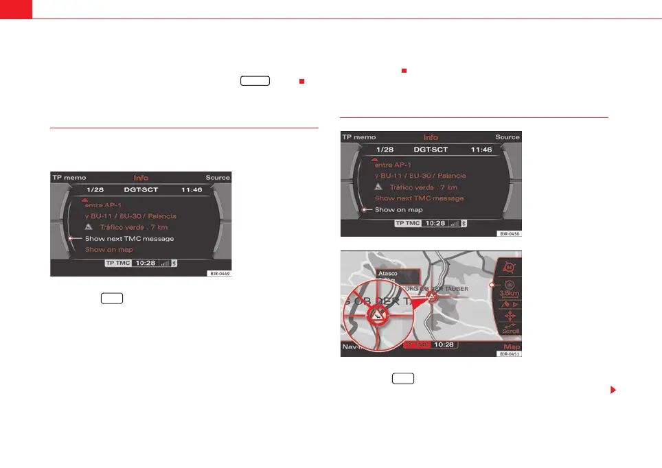 – Select one of the available TMC traffic announcements by