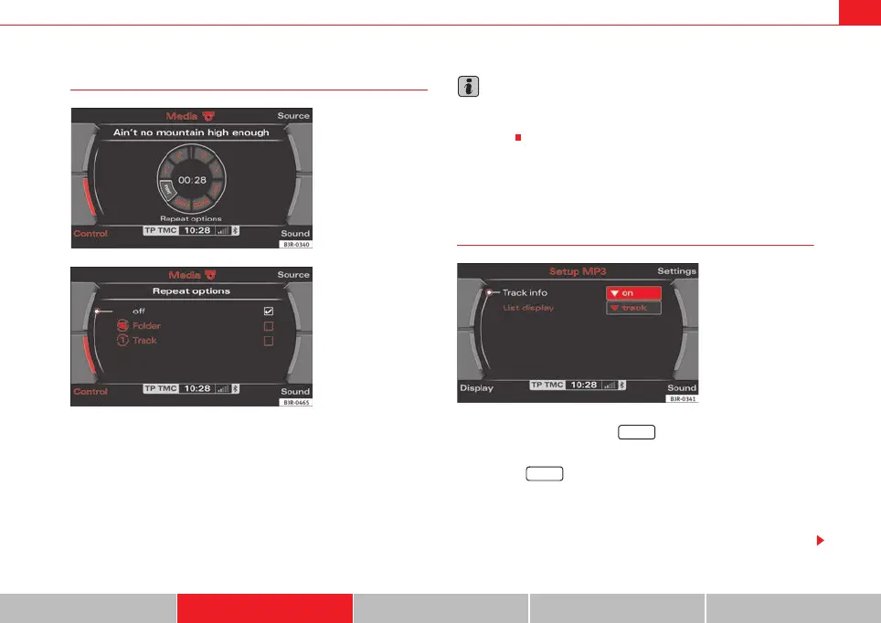 – In an MP3 menu, press the ⇒ page 9 button to open the