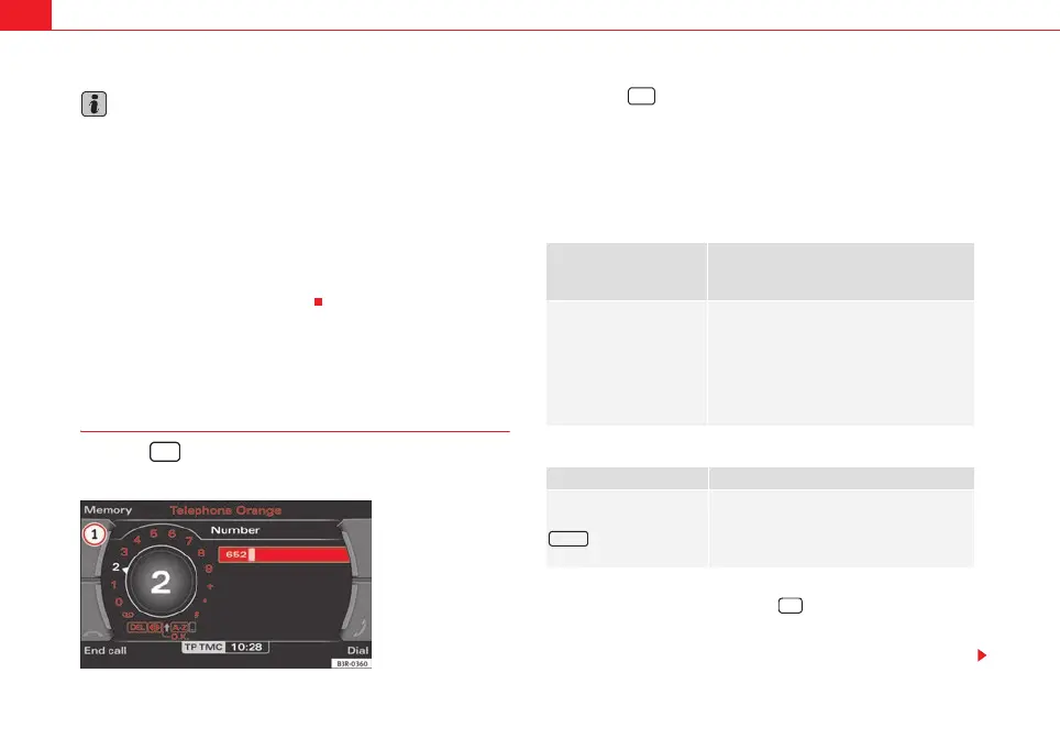 – Press the control button for Memory ⇒ fig. 88 to call up the