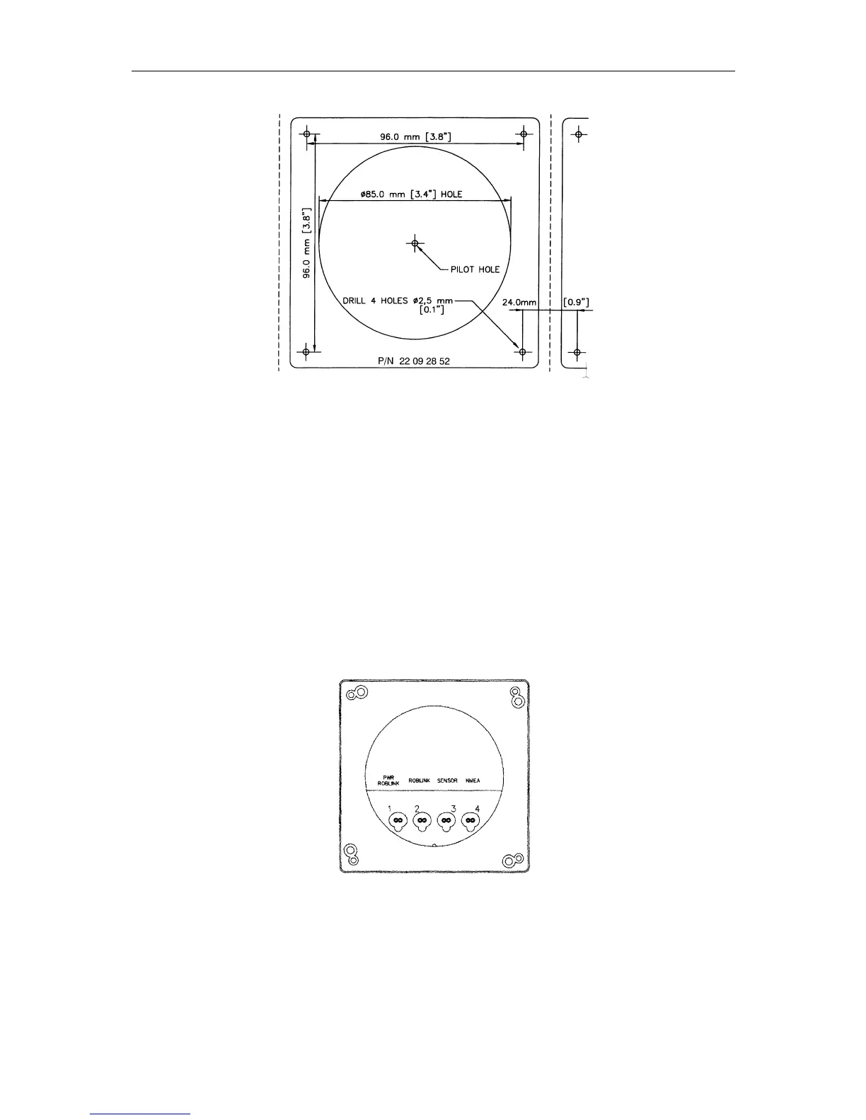 The NMEA display has four identical two-pin connector sockets protected by rubber plugs at