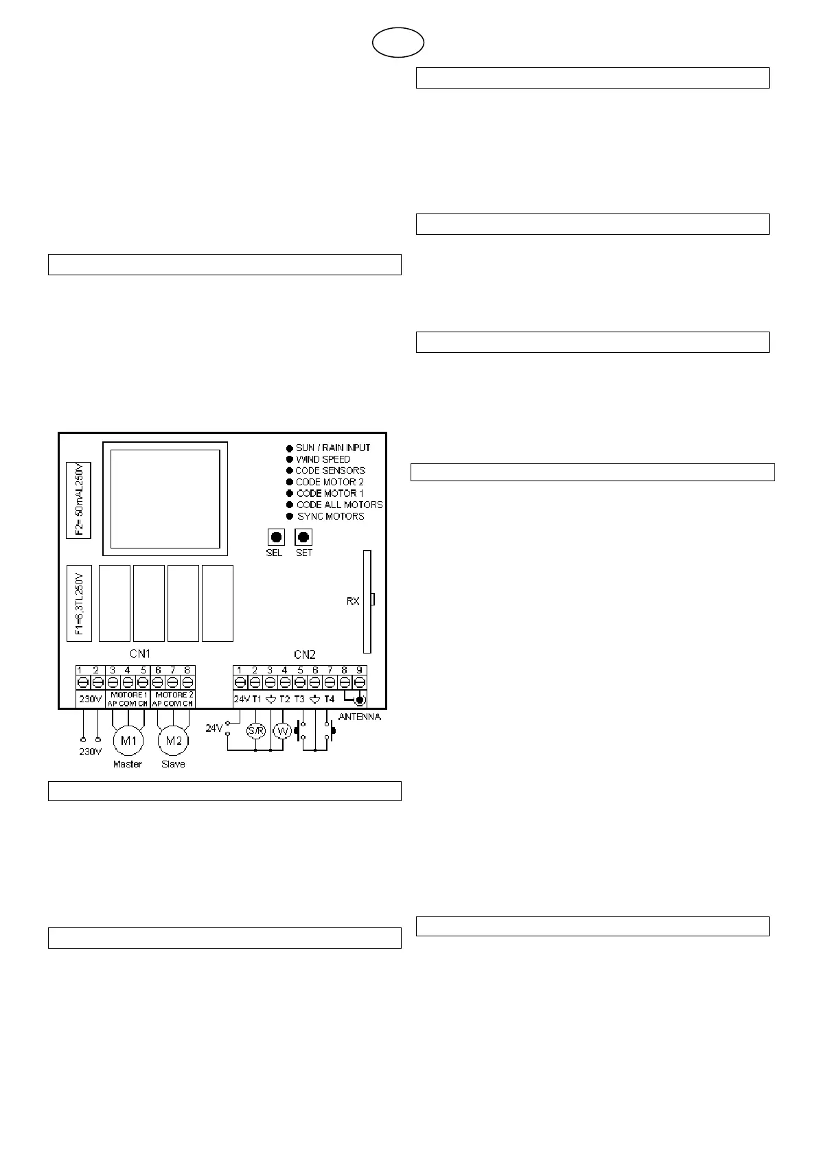 connecting a wired Sun or Rain Sensor input T1 (if selected), a