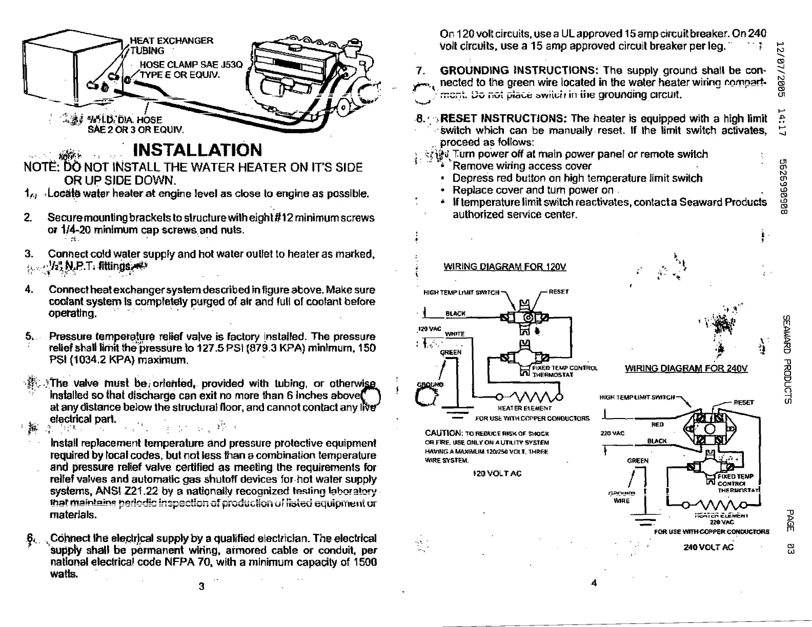 Seaward F700 - Installation; Grounding Instructions; Reset Instructions